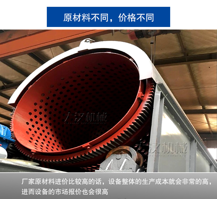 原材料價格的高低對設備價格的影響也是很大的,如果一個廠家原材料進價比較高的話,設備整體的生產成本就會非常的高,進而設備的市場報價也會很高;相反,如果原材料進價比較低的話,設備的生產成本就低,無軸滾筒篩價格也就定的很低。