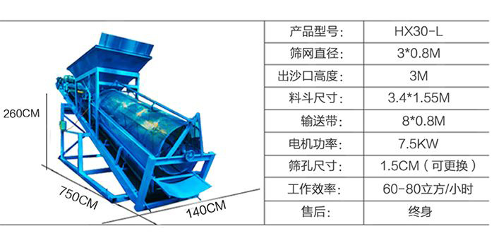 30滾筒篩沙機(jī)尺寸及參數(shù)