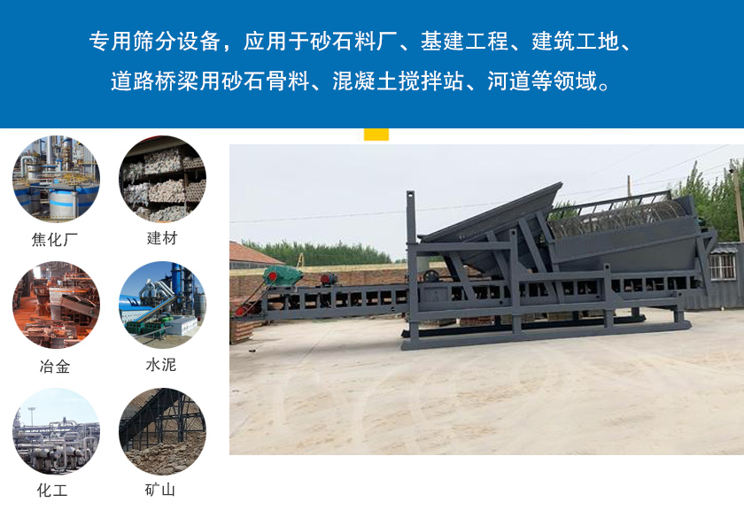 30滾筒篩沙機(jī)克服了普通振動(dòng)篩在篩分較濕物料時(shí)易出現(xiàn)的堵塞問題,是專門針對電廠、焦化廠、建材、冶金、水泥、化工、礦山等行業(yè)而研制的專用篩分設(shè)備,應(yīng)用于砂石料廠、基建工程、建筑工地、道路橋梁用砂石骨料、混凝土攪拌站、河道等領(lǐng)域。