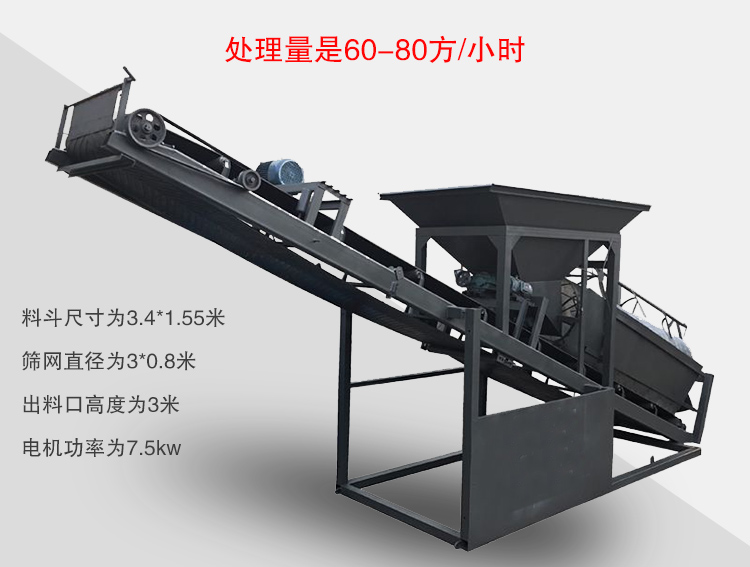 2、每小時(shí)可處理60-80方物料,篩分產(chǎn)量大。